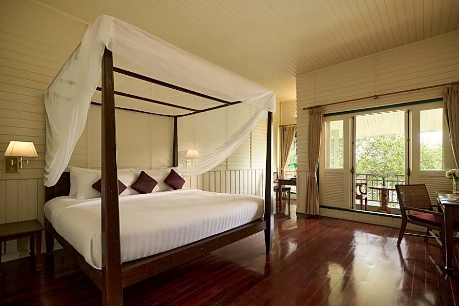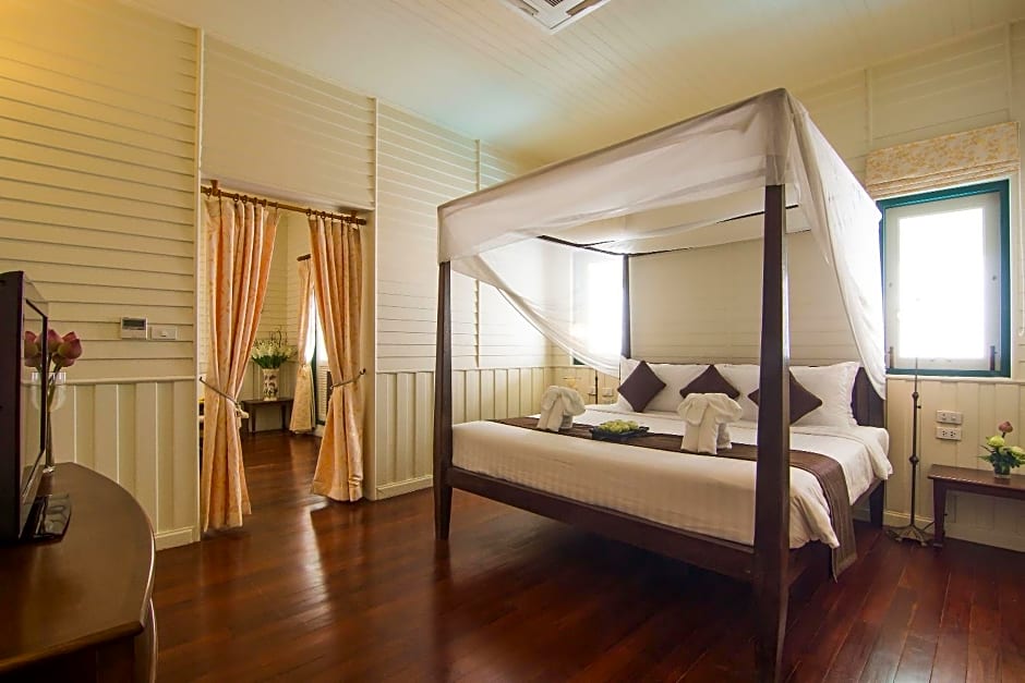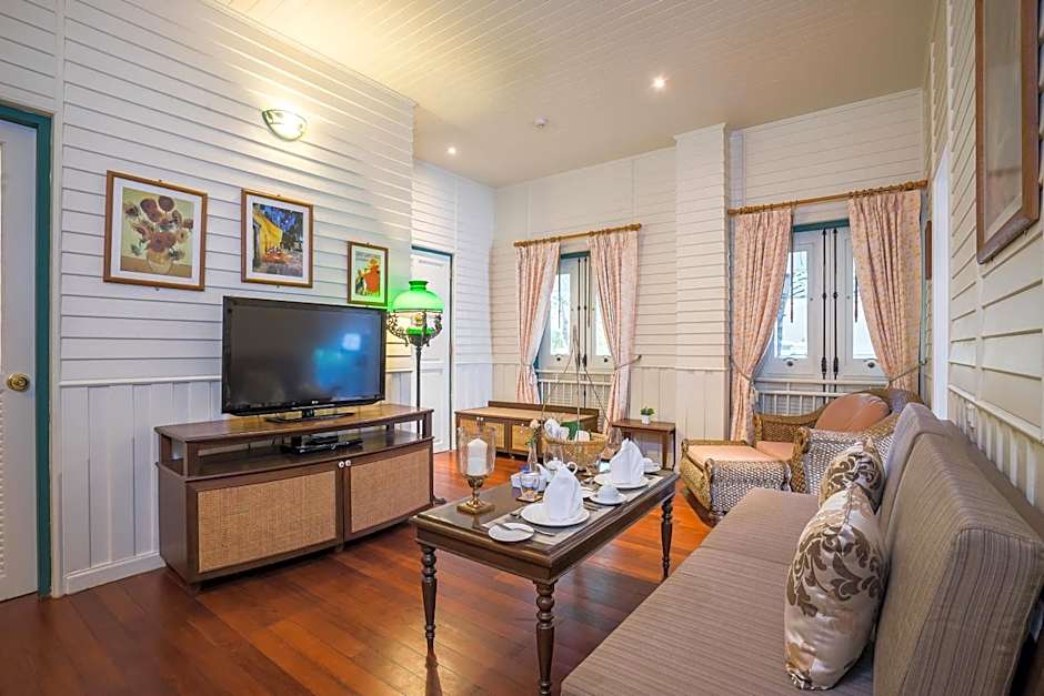 Nestled within lush gardens, our Courtyard Villa provides a panoramic view, ideal for families or small groups. The master bedroom features an private bathroom, complemented by two additional bedrooms. Relax in the spacious living area with Thai-colonial decor, and unwind in the garden sala or outdoor jacuzzi.